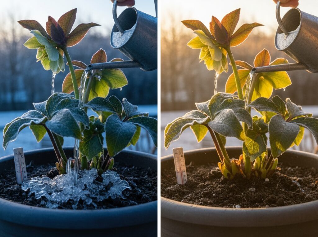 冬の鉢植え管理で、置き場所と同じくらい大事なのが「水やり」です。特に「時間帯」と「頻度」が重要なんですよ。